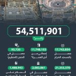 مكة المكرمة-استقبل المسجد الحرام بمكة المكرمة والمسجد النبوي في المدينة المنورة، أكثر من 54.5 مليون زائر خلال الفترة بين 23 سبتمبر (أيلول) و22 أكتوبر (تشرين...